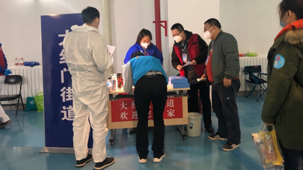 7、分流:到達豐臺體育中心后,按所在街道進行分流。記者在完成體溫測量和身份驗證后,乘坐大紅門街道組織的車輛前往社區。