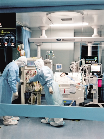 東院區重癥監護室內,危重癥患者在接受人工肝治療。圖片由武漢大學人民醫院提供