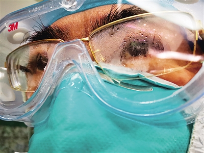 除了“標配”防護裝備,產科醫務人員還要面對為保護新生兒而特意調高的室溫。醫生們克服呼吸困難、視野模糊,拼盡全力為危難孕產婦托舉起一個個鮮活的新生命。