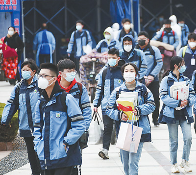 圖為3月30日,江蘇淮安,江蘇省清江中學(xué)學(xué)生有序進(jìn)入校園。趙啟瑞攝(影像中國)