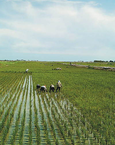 在吉林松原市前郭爾羅斯蒙古族自治縣查干湖鎮欣發村,農民在有機稻田中除草。記者 孟海鷹攝(資料圖片)