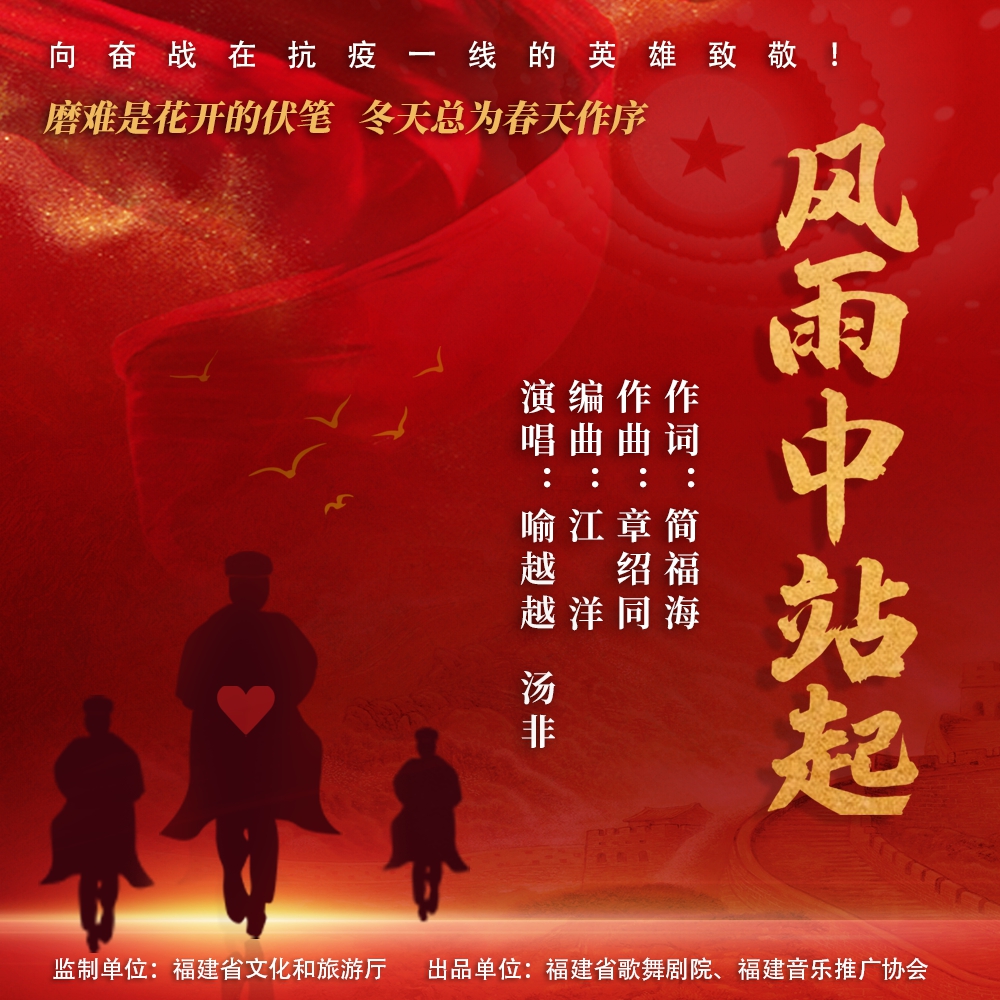 近日,由簡福海作詞,著名作曲家章紹同作曲,知名音樂制作人江洋編曲,著名青年歌唱家喻越越、著名青年歌唱家湯非聯(lián)袂獻(xiàn)聲的公益歌曲《風(fēng)雨中站起》正式上線。該歌曲由福建省文化和旅游廳監(jiān)制,福建省歌舞劇院和福建音樂推廣協(xié)會出品。