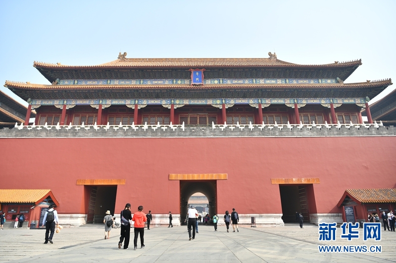 5月1日,游客從午門進入故宮。 當日,故宮博物院有序恢復開放,實行預約、錯峰、限流等措施,每日限5000人參觀。觀眾可通過故宮博物院網絡售票網站,使用第二代身份證或護照信息預約購票。 新華社記者 李鑫 攝