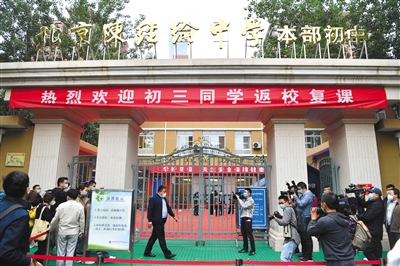 初三開學(xué)不是簡單的高三開學(xué)的復(fù)制。北京市教委新聞發(fā)言人李奕坦言,由于北京的初中學(xué)生多,初中校的類型多,初三開學(xué)難度相對更大。“在防疫標(biāo)準(zhǔn)上不僅不能降低,還要針對學(xué)校的不同特點(diǎn),完善具體方案。”