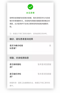 如核酸檢測(cè)結(jié)果為陰性,則防疫健康風(fēng)險(xiǎn)狀態(tài)顯示“未見異常”。