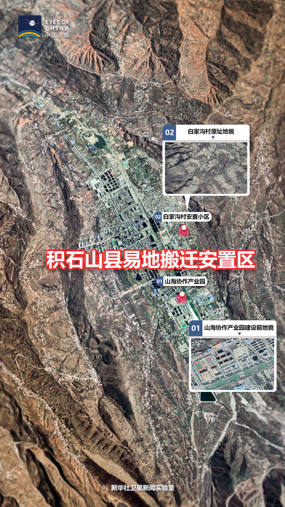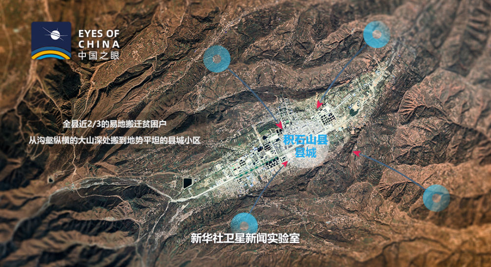 從衛星視角俯瞰,搬到縣城的原因一目了然。積石山縣城地勢平坦、水源充足,如同夾在兩山間的狹長綠洲。衛星記錄了縣城近年來的變化,高樓建起、區域擴大。山上村民們的陸續遷入,讓這兒成為全縣境內最具活力的希望之地。