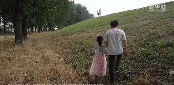 ↑?小思揚(yáng)(左)和爸爸一起散步。