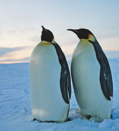 5月26日,隊(duì)員在普里茲灣海冰觀測途中偶遇的企鵝。孫曉宇攝