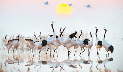 鹽城國家級(jí)珍禽自然保護(hù)區(qū)里的丹頂鶴。孫華金攝