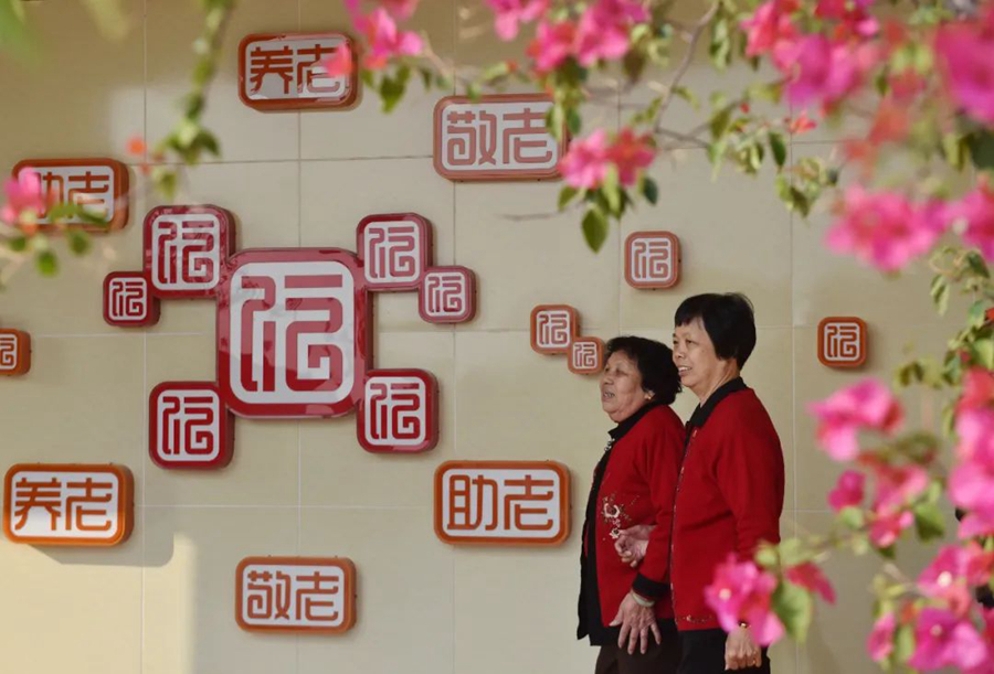 老人們?cè)诟=ㄊx江市磁灶鎮(zhèn)大埔村敬老院散步(新華社記者宋為偉 攝)
