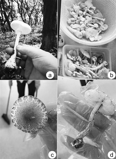 圖為江蘇患者食用的有毒蘑菇,a、b為歐式鵝膏菌,c、d為肉褐鱗環柄菇。受訪者供圖