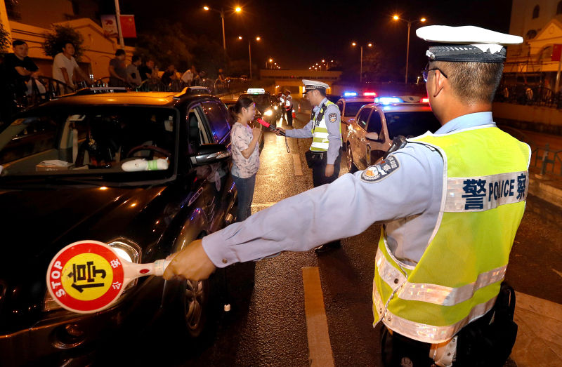 2019年10月4日,上海市公安局奉賢分局交警支隊在查酒駕 凡軍 攝