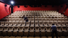 放映結束后,工作人員進入放映廳進行清潔消毒,另一個已完成消毒的放映廳則已迎來新的觀眾。