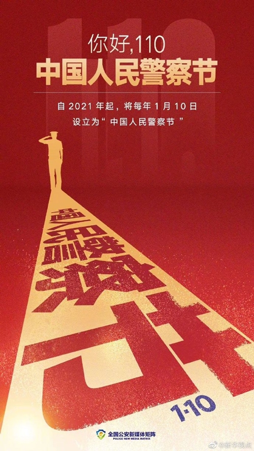 記者從公安部獲悉,近日,經(jīng)黨中央批準(zhǔn)、國務(wù)院批復(fù),自2021年起,將每年1月10日設(shè)立為“中國人民警察節(jié)”。這是在國家層面專門為人民警察隊(duì)伍設(shè)立的節(jié)日。