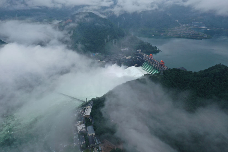 7月8日,新安江水庫(kù)開啟9孔泄洪(無人機(jī)照片)。新華社發(fā)(李忠 攝)