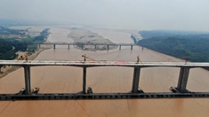 7月25日,工作人員在重慶墊江縣高安鎮龍溪河清漂。新華社記者 王全超 攝
