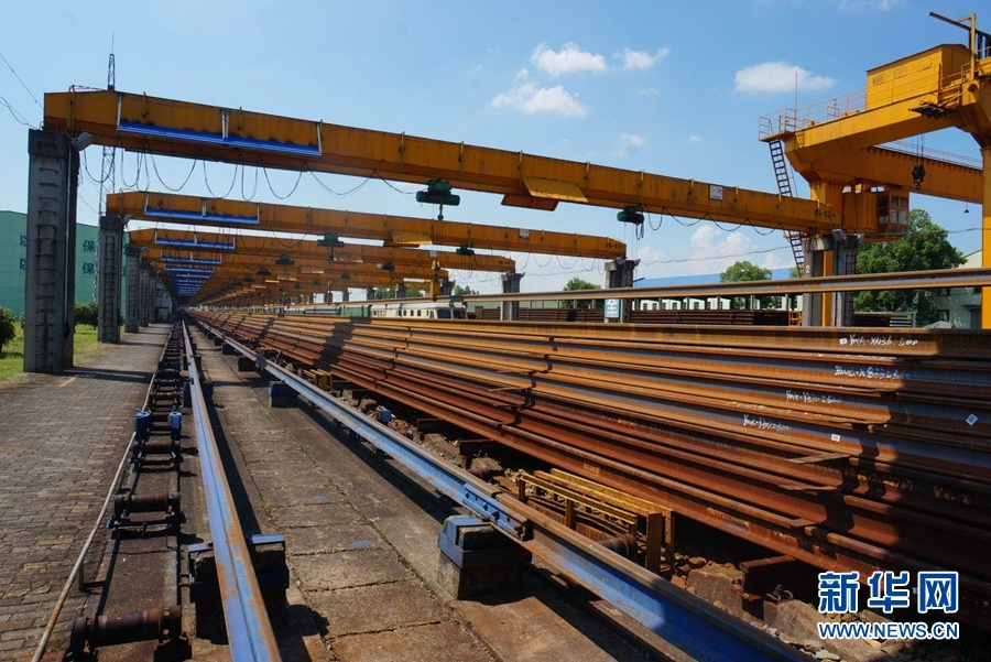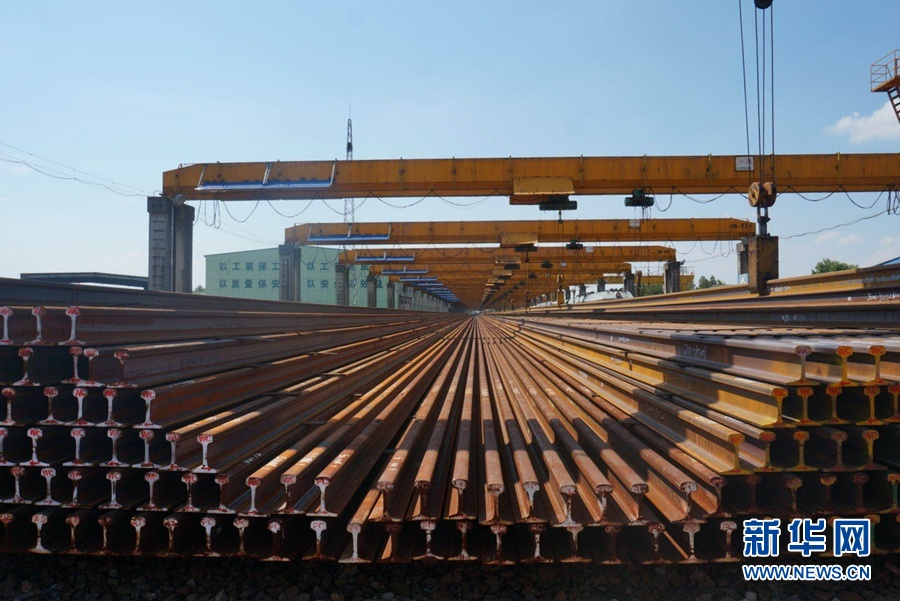 8月17日,在向塘長軌基地,焊接好的一根根百米長高鐵鋼軌整齊地排列在一起。新華網(wǎng)記者劉瓊?攝