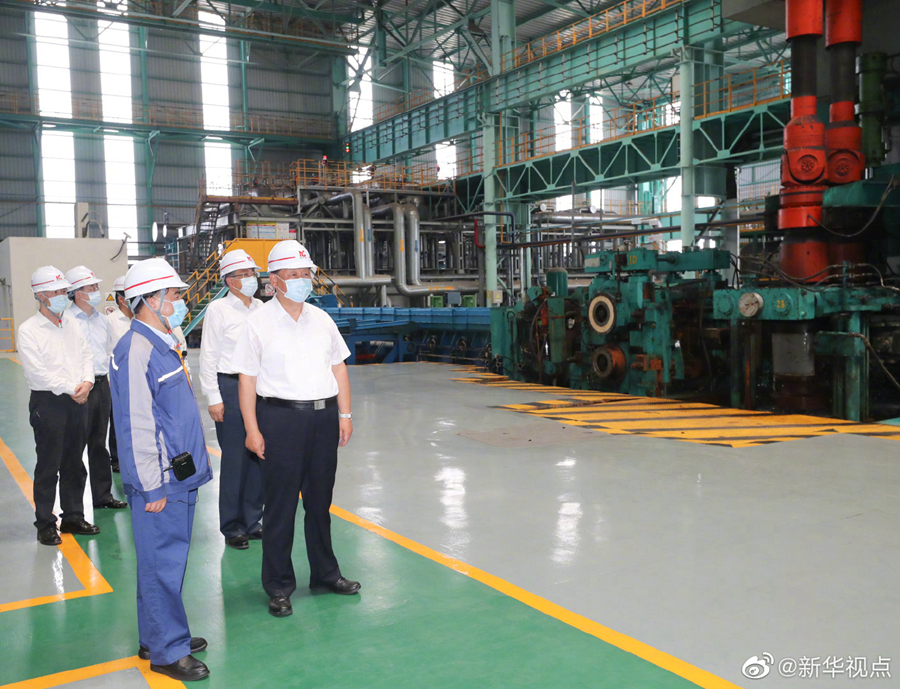 19日上午,正在安徽考察調研的習近平總書記走進中國寶武馬鋼集團優質合金棒材車間,冒著高溫察看生產運行情況,并同勞動模范、工人代表親切交流。習近平指出,在抗擊新冠肺炎疫情過程中,馬鋼較早復工復產,實現了產量、營銷收入同比雙升,展現了國有經濟的強大韌性。他勉勵馬鋼在長三角一體化發展中把握機遇、順勢而上,特別是要把自身改革發展同長三角一體化發展有機結合銜接,力爭在長三角一體化發展中不斷發展壯大自己,也為長三角一體化發展作出自己的貢獻。(文字記者:張曉松 攝影記者:鞠鵬 王曄 燕雁)