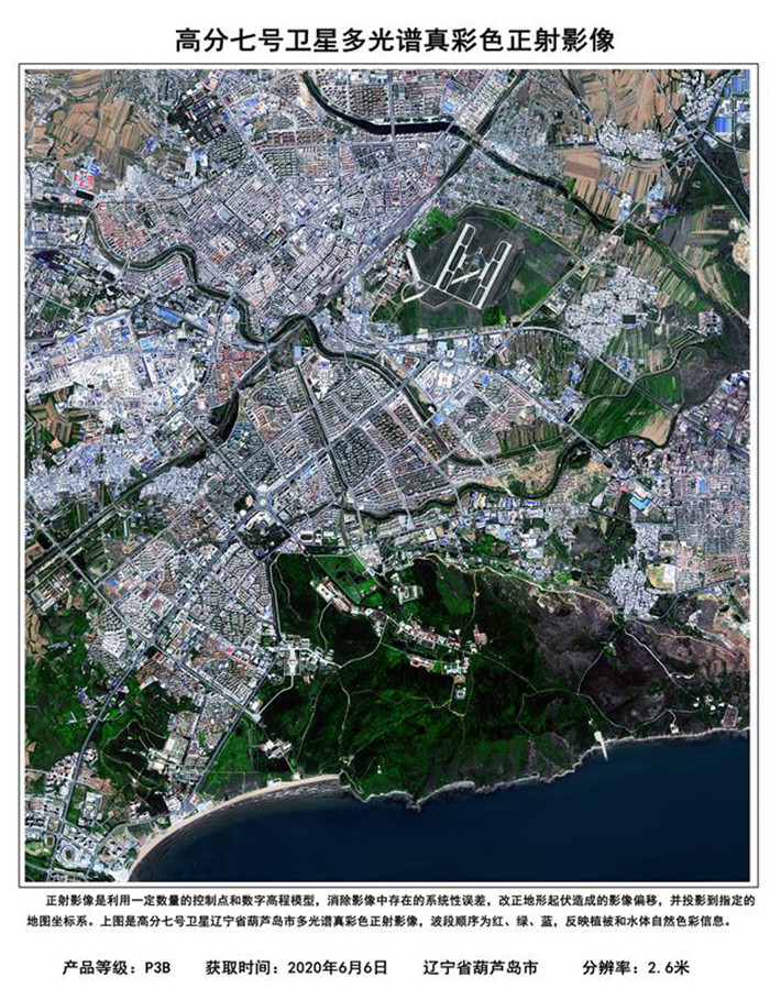 這是高分七號衛星于2020年6月6日獲取的遼寧省葫蘆島市的多光譜真彩色正射影像。 新華社發(國家航天局提供)