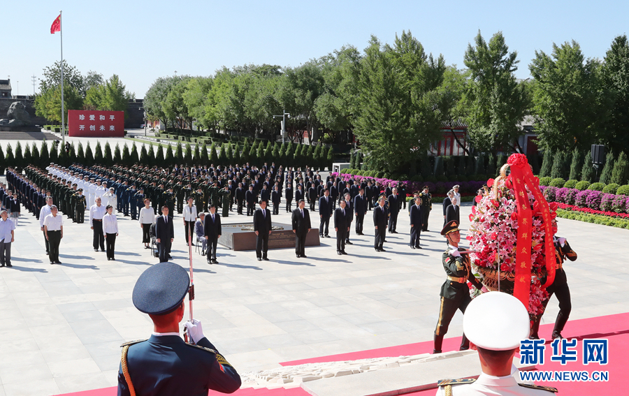 9月3日上午,習近平、李克強、栗戰(zhàn)書、汪洋、王滬寧、趙樂際、韓正、王岐山等黨和國家領導人來到中國人民抗日戰(zhàn)爭紀念館,出席紀念中國人民抗日戰(zhàn)爭暨世界反法西斯戰(zhàn)爭勝利75周年向抗戰(zhàn)烈士敬獻花籃儀式。 新華社記者 王曄 攝