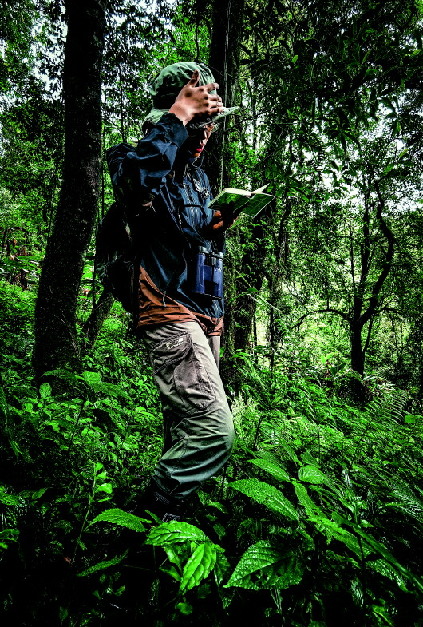 就是在這次調(diào)查過程中,飯飯那雙登山靴“本來好端端的一部分被永遠(yuǎn)留在了山上”。一路手腳并用、氣喘吁吁,還要時(shí)刻提防被樹枝啪啪打臉,飯飯覺得山里“完全沒有路”;讓她驚嘆的是,身邊的祝常悅居然可以在密林深處走得“一陣清風(fēng)如履平地”,還有精力隨手拍下一條盤亙在落葉上的竹葉青蛇。飯飯還沒想明白,常悅站長這種“地上無路,腳下有路”的境界是怎么“修煉”出來的。