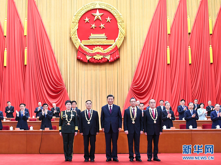在全場熱烈的掌聲中,在人們崇敬的目光注視下,4位國家勛章和國家榮譽稱號獲得者受邀到主席臺就座。
