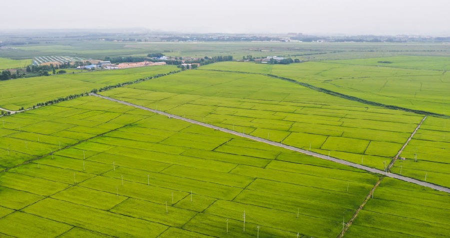 這是吉林市昌邑區(qū)大荒地村周邊的高標(biāo)準(zhǔn)水稻田(8月13日攝,無人機(jī)照片)。新華社記者 許暢 攝