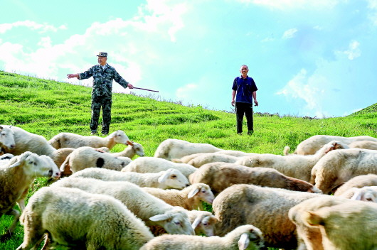 8月10日,王文剛正在幫助村民趕羊。記者張晟攝