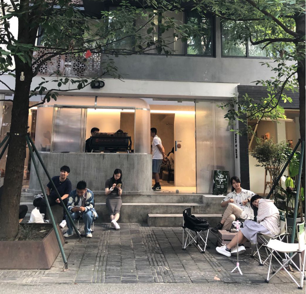 然而,眼前卻是和諧的景象:住在街區(qū)的樂齡長者在禁止機(jī)動(dòng)車進(jìn)入的步道上或坐著、或站著;剛放學(xué)的小朋友在街上或跳繩、或騎車,用成都話來說就是人民都在街上“?!保贿@里的食店和酒館也沒有過多的噪音和油煙排放,消費(fèi)者也很有禮貌地在路上行走、在店鋪旁等位——實(shí)際上,不少食客和消費(fèi)者也是當(dāng)?shù)氐木用瘛?/span>