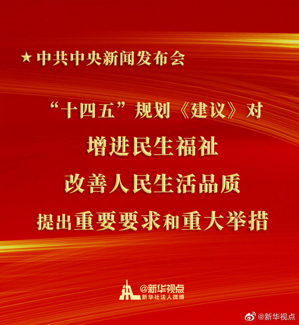 國(guó)家發(fā)展和改革委員會(huì)黨組成員、副主任,國(guó)家統(tǒng)計(jì)局黨組書記、局長(zhǎng)寧吉喆說(shuō),“十四五”規(guī)劃《建議》順應(yīng)億萬(wàn)群眾的期盼,對(duì)增進(jìn)民生福祉,改善人民生活品質(zhì)提出了一些重要要求和重大舉措。在就業(yè)方面,將強(qiáng)化就業(yè)優(yōu)先政策,擴(kuò)大就業(yè)容量,完善重點(diǎn)群體就業(yè)支持體系,實(shí)現(xiàn)更充分更高質(zhì)量的就業(yè);在收入方面,將提高人民收入水平,多渠道增加城鄉(xiāng)居民收入,保持居民收入與經(jīng)濟(jì)增長(zhǎng)基本同步;在教育方面,將建設(shè)高質(zhì)量教育體系,推動(dòng)義務(wù)教育均衡發(fā)展和城鄉(xiāng)一體化,促進(jìn)全民受教育程度不斷提升;在文化體育方面,將廣泛開展群眾性文化活動(dòng),廣泛開展全民健身運(yùn)動(dòng);在健康方面,將全面推進(jìn)健康中國(guó)建設(shè),加快優(yōu)質(zhì)醫(yī)療資源擴(kuò)容和區(qū)域均衡布局,使衛(wèi)生健康體系更加完善;在養(yǎng)老方面,將實(shí)施積極應(yīng)對(duì)人口老齡化國(guó)家戰(zhàn)略,促進(jìn)人口長(zhǎng)期均衡發(fā)展,健全基本養(yǎng)老服務(wù)體系;在社保方面,將健全覆蓋全民、統(tǒng)籌城鄉(xiāng)、公平統(tǒng)一、可持續(xù)的多層次社會(huì)保障體系。