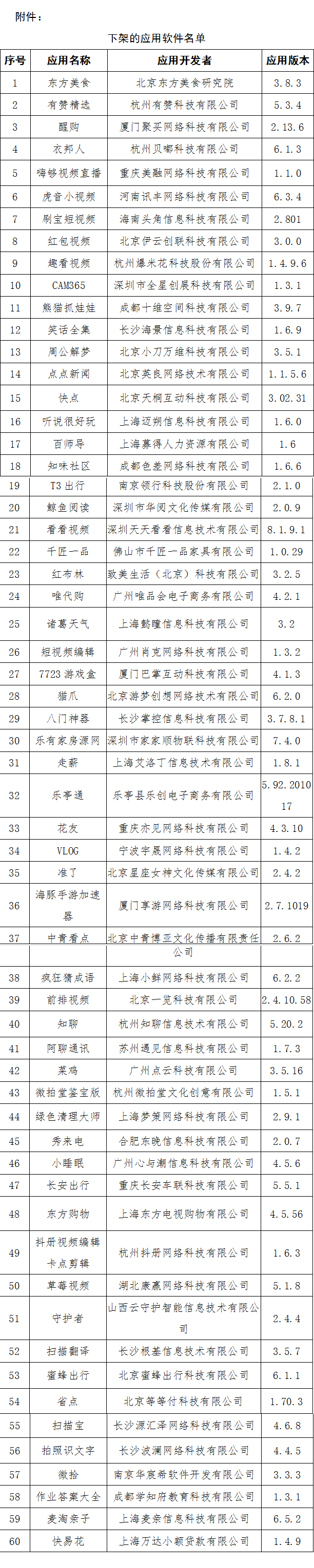新華社北京11月10日電(記者張辛欣)工信部10日通報,截至目前,經(jīng)第三方檢測機構(gòu)核查復檢,有贊精選、紅布林等60款App存在侵害用戶權(quán)益行為且未按照要求完成整改。依據(jù)有關法律和規(guī)范性文件要求,工信部組織對上述App進行下架。