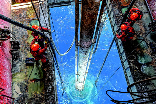 ▲工人在勘探三號(hào)上作業(yè)(7月27日攝)。圖片均由本報(bào)記者蒲曉旭攝