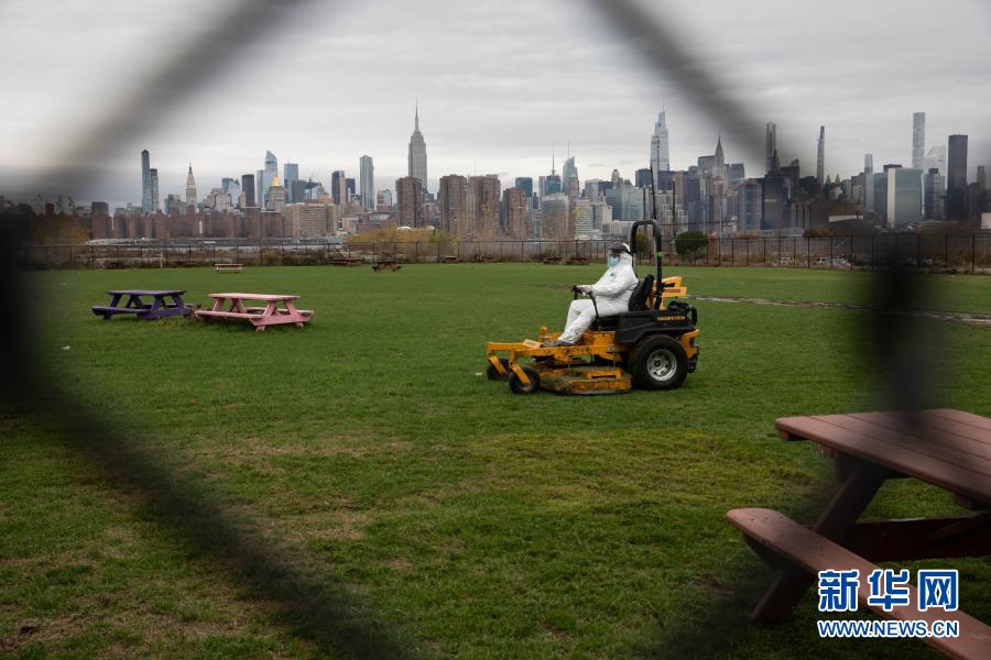 11月12日,在美國(guó)紐約一座公園,工人在養(yǎng)護(hù)草坪。新華社發(fā)(郭克攝)