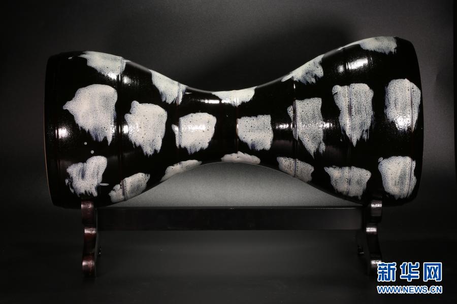 這是魯山窯花瓷腰鼓復仿制品(資料照片)。新華社發
