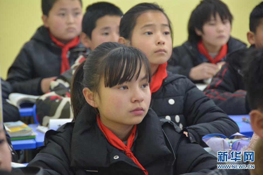 12月1日,在廣河縣三甲集鎮(zhèn)火炬小學(xué),東鄉(xiāng)族女孩馬梅(前排)正在教室內(nèi)聽(tīng)講。新華社記者顏之宏攝