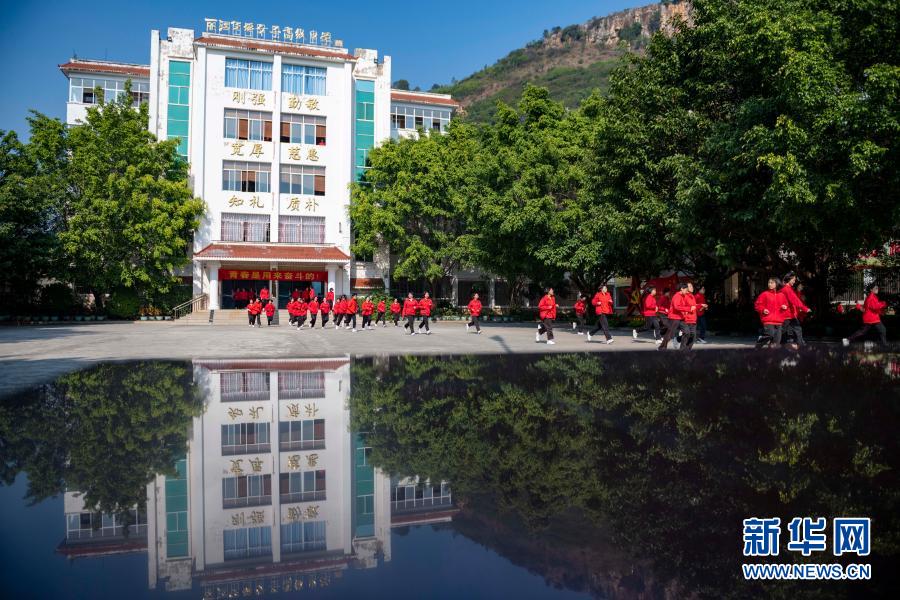 華坪女高學生從教學樓跑向食堂吃飯(11月30日攝)。新華社發(陳欣波 攝)