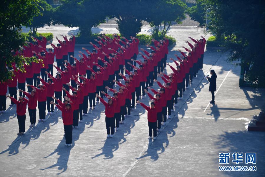 張桂梅在督促學生做課間操(12月2日攝)。新華社發(陳欣波 攝)