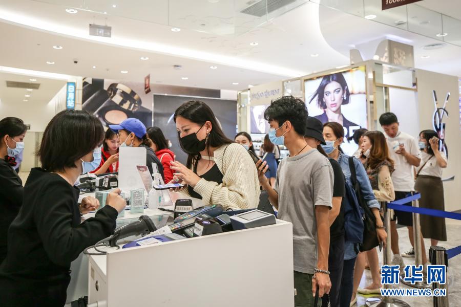 10月27日,消費(fèi)者在海南省海口市日月廣場免稅店選購商品。新華社記者 張麗蕓攝