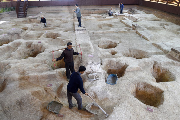 上山考古遺址公園內發掘原址上的考古現場情景再現。韓傳號?攝
