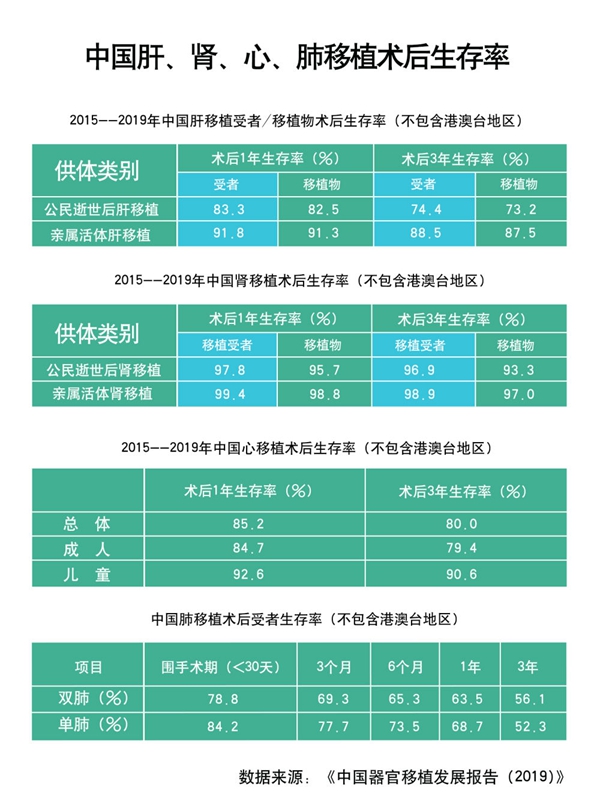 靈丹妙藥難尋就,須得妙手方回春。器官移植因其復雜程度、風險之大,被譽為臨床醫(yī)學技術(shù)“王冠上的明珠”。黃潔夫介紹,5年來,中國器官移植術(shù)后生存率居國際前列。其中,公民逝世后器官捐獻肝移植受者術(shù)后生存率1年達83.3%,術(shù)后3年達74.4%;2018年心臟移植術(shù)后1年生存率達90.8%,高于國際心肺移植學會公布的85.4%;逝世后器官捐獻腎移植受者術(shù)后3年生存率為96.9%;2019年中國共完成9例兒童肺移植,創(chuàng)國內(nèi)年齡最小的兒童肺移植記錄(不包括港、澳、臺地區(qū))。