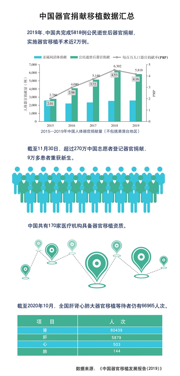 ——進一步拓寬器官捐獻來源滿足移植需求。“中國器官捐獻數(shù)量和捐獻率雖逐年增長,但與國內(nèi)患者的巨大需求相比相距甚遠。”王海波說,截至2020年10月,全國仍有60439人次等待腎移植、5879人次等待肝移植、503人次等待心移植、144人次等待肺移植。