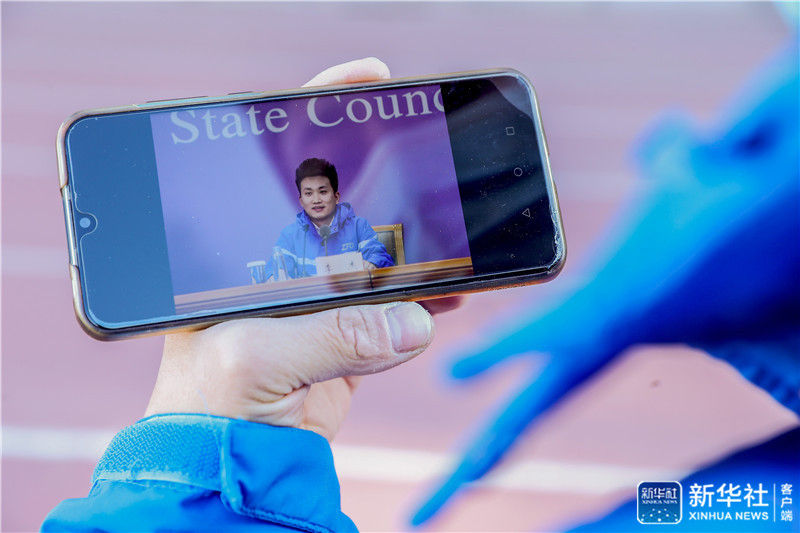 12月16日,李杰在展示他在參加國務(wù)院聯(lián)防聯(lián)控機制新聞發(fā)布會時的照片。新華社記者 張玉薇 攝