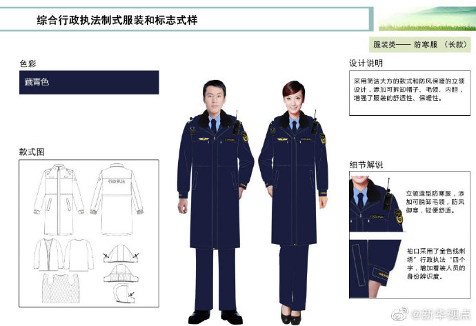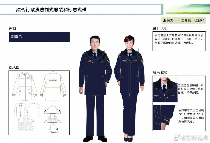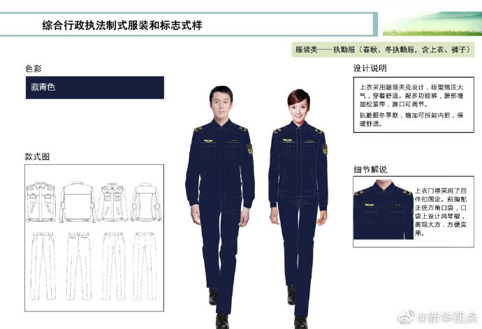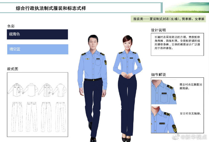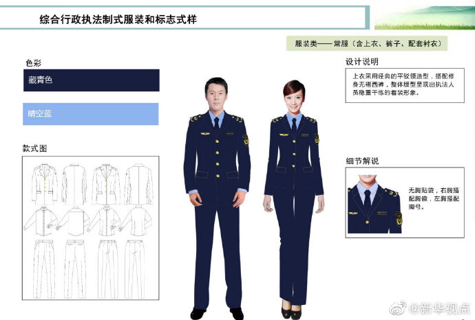 【這些綜合行政執法部門將統一著裝,你喜歡嗎?】財政部、司法部日前印發《綜合行政執法制式服裝和標志管理辦法》,明確加強生態環境保護、交通運輸、農業、文化市場、應急管理、市場監管等綜合行政執法制式服裝和標志管理。這6支綜合行政執法隊伍將統一著裝,不同執法隊伍通過標志中的名稱和圖案加以區分,徹底解決長期以來不同執法部門著裝五花八門的問題。來看看這些“新衣”預覽吧!(記者申鋮、白陽)