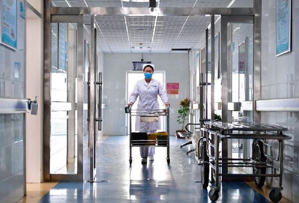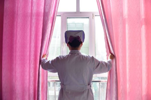 12月16日,海東市第一人民醫(yī)院內(nèi)科護(hù)士劉海婷在病房?jī)?nèi)為患者拉開(kāi)窗簾。