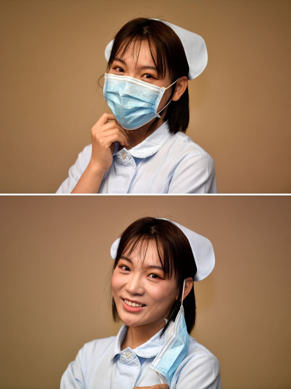“總穿著防護服,我都好久不化妝了。”隔著口罩,張碩笑起來眼睛瞇成了月牙。