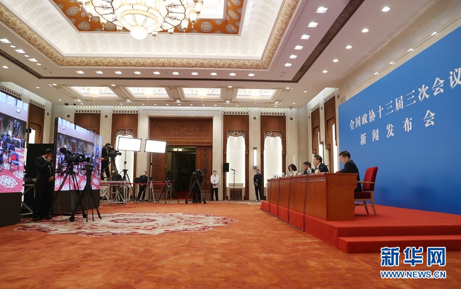 5月20日,全國政協(xié)十三屆三次會議召開新聞發(fā)布會。大會新聞發(fā)言人郭衛(wèi)民向中外媒體介紹本次大會有關(guān)情況并回答記者提問。圖為新聞發(fā)布會現(xiàn)場。新華網(wǎng)記者 王翰林 攝