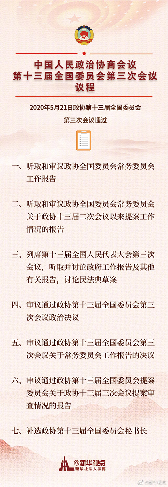 中國人民政治協(xié)商會議第十三屆全國委員會第三次會議議程