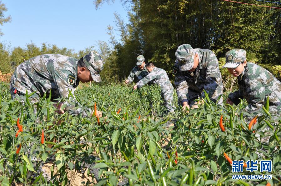 廣西梧州市長(zhǎng)洲區(qū)人武部組織干部職工到對(duì)口幫扶的村子幫助村集體采摘辣椒(2020年12月3日攝)。新華社發(fā)(劉靜 攝)