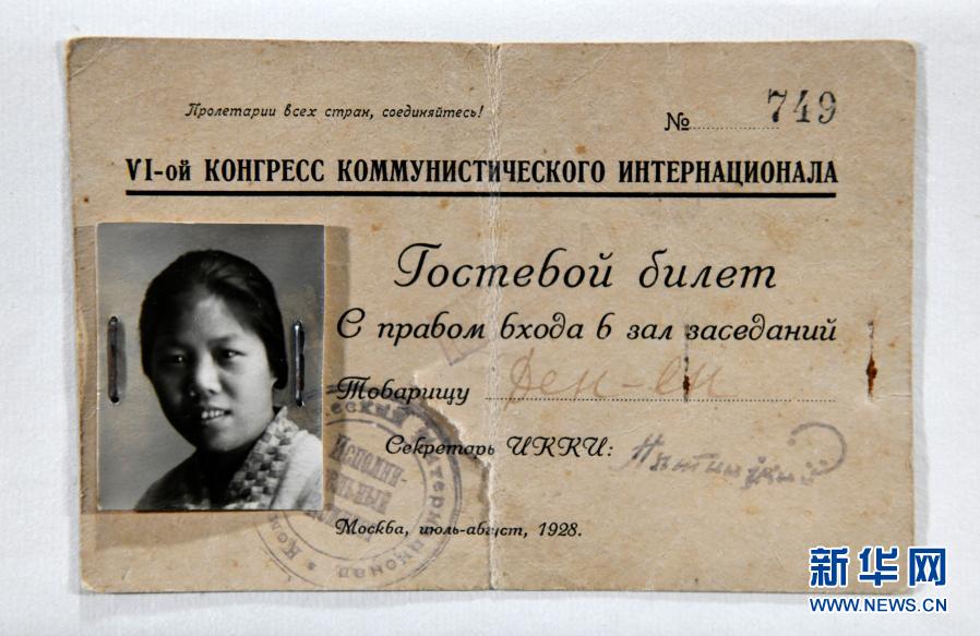 “這是一個長方形的紙質證件,俄文印刷的,上面印有‘全世界無產者聯合起來’‘共產國際第六次代表大會’,用訂書釘固定了一張鄧穎超同志的黑白照片,加蓋有共產國際執委會的徽章?!崩钋诮榻B說,這是1928年鄧穎超參加共產國際六大的列席證。此行,鄧穎超還有一個更重要的任務,陪同周恩來參加黨的第六次全國代表大會。