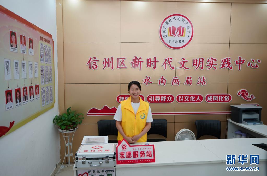 江西省上饒市信州區(qū)新時(shí)代文明實(shí)踐中心水南畫(huà)眉站的工作人員在值班(7月22日攝)。新華社記者 邢廣利 攝